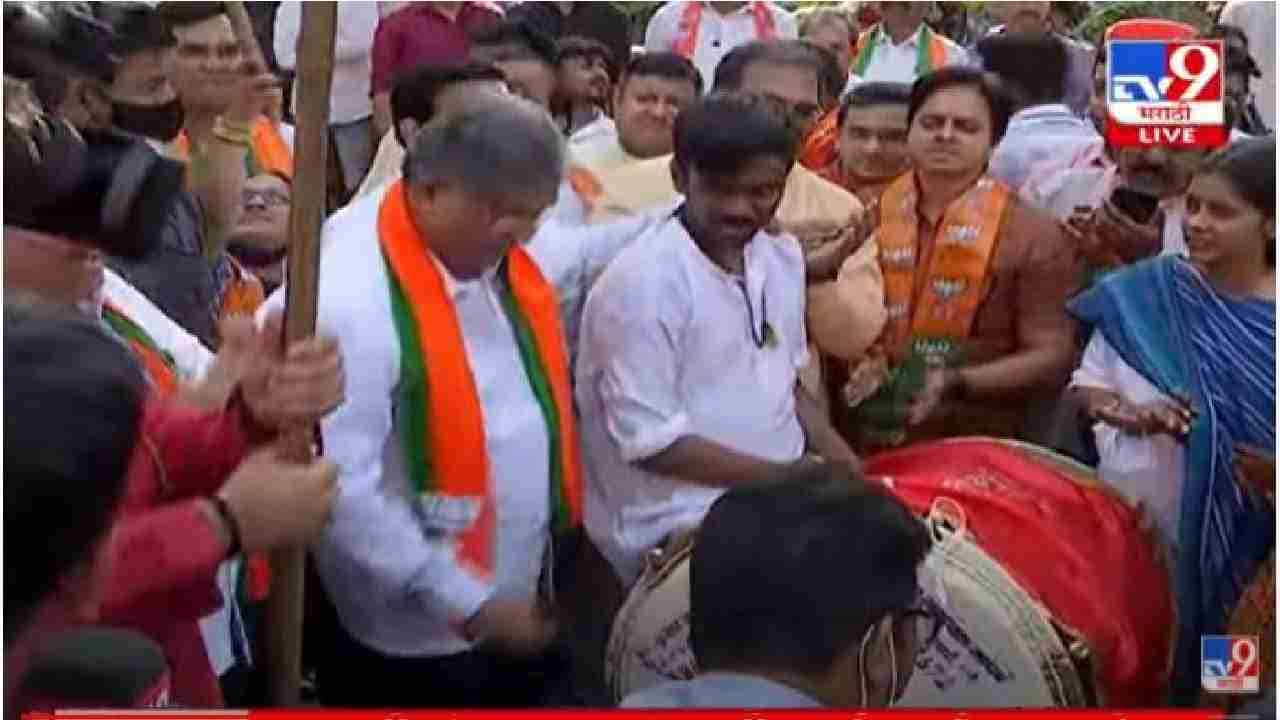 चंद्रकांत पाटलांना ढोल वाजवण्याचा मोह अनावर