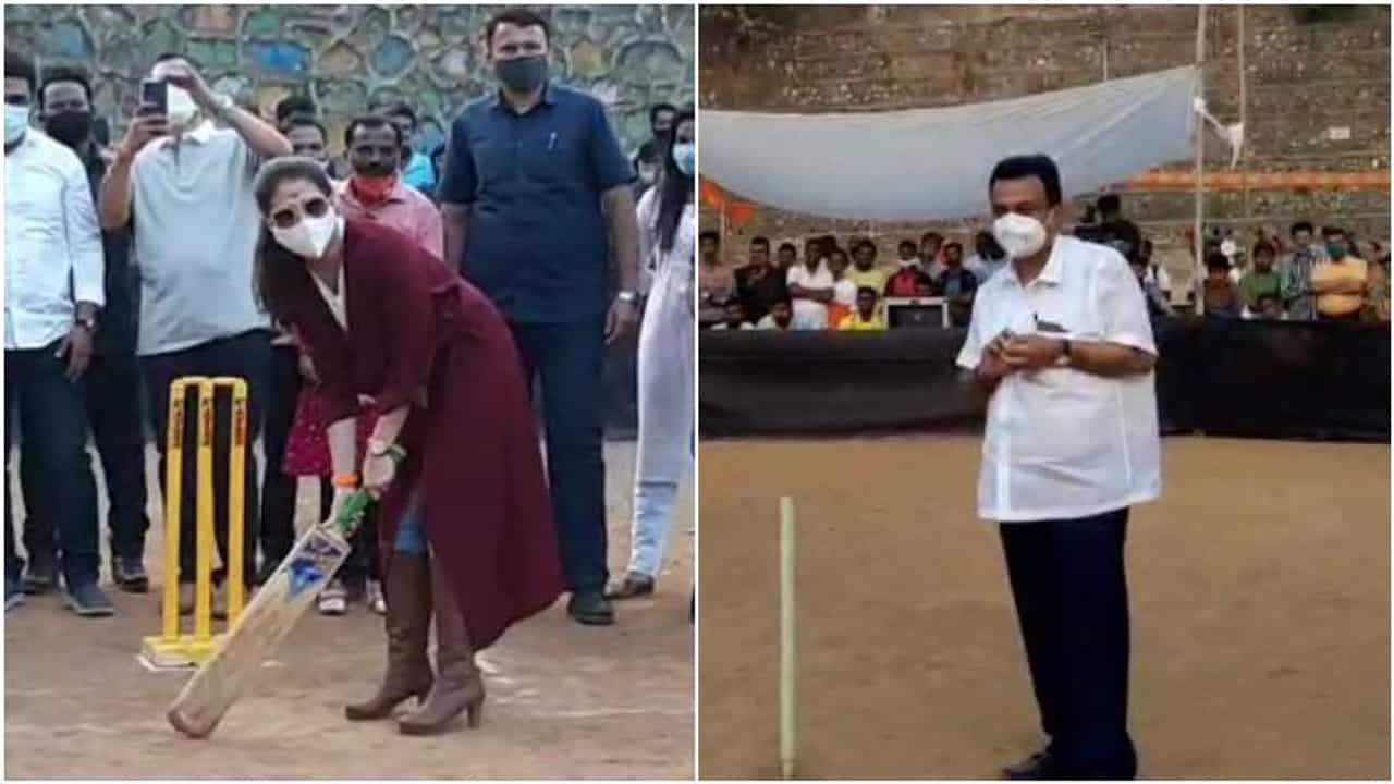 VIDEO: दिंडोशीत क्रिकेटचा राजकीय डाव रंगला, आमदार सुनील प्रभूंच्या गोलंदाजीवर उर्मिलाची फटकेबाजी