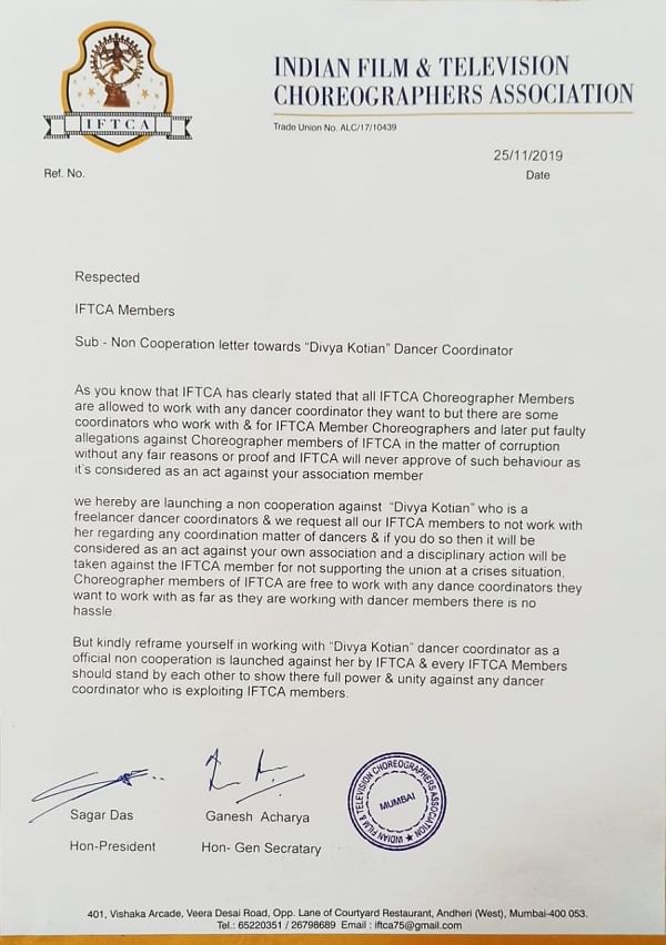 गणेश आचार्य म्हणाले, “दिव्या कोण आहे हे मला माहिती नाही. मी तिच्यासोबत काम केलेलं नाही. ती डान्स मास्टर्स असोसिएशनमध्ये असिस्टंट होती हे मला माहिती आहे. तिने डान्स मास्टर्स असोसिएशनच्या लोकांविरुद्ध तक्रार केली आहे. मी तिथं जनरल सेक्रेटरी आहे. तिच्या त्या गोष्टीवरुन तिचं कार्ड रद्द केलं आहे. त्यानंतर ती हसत हसत आपलं कार्ड घेऊन गेली आहे.”