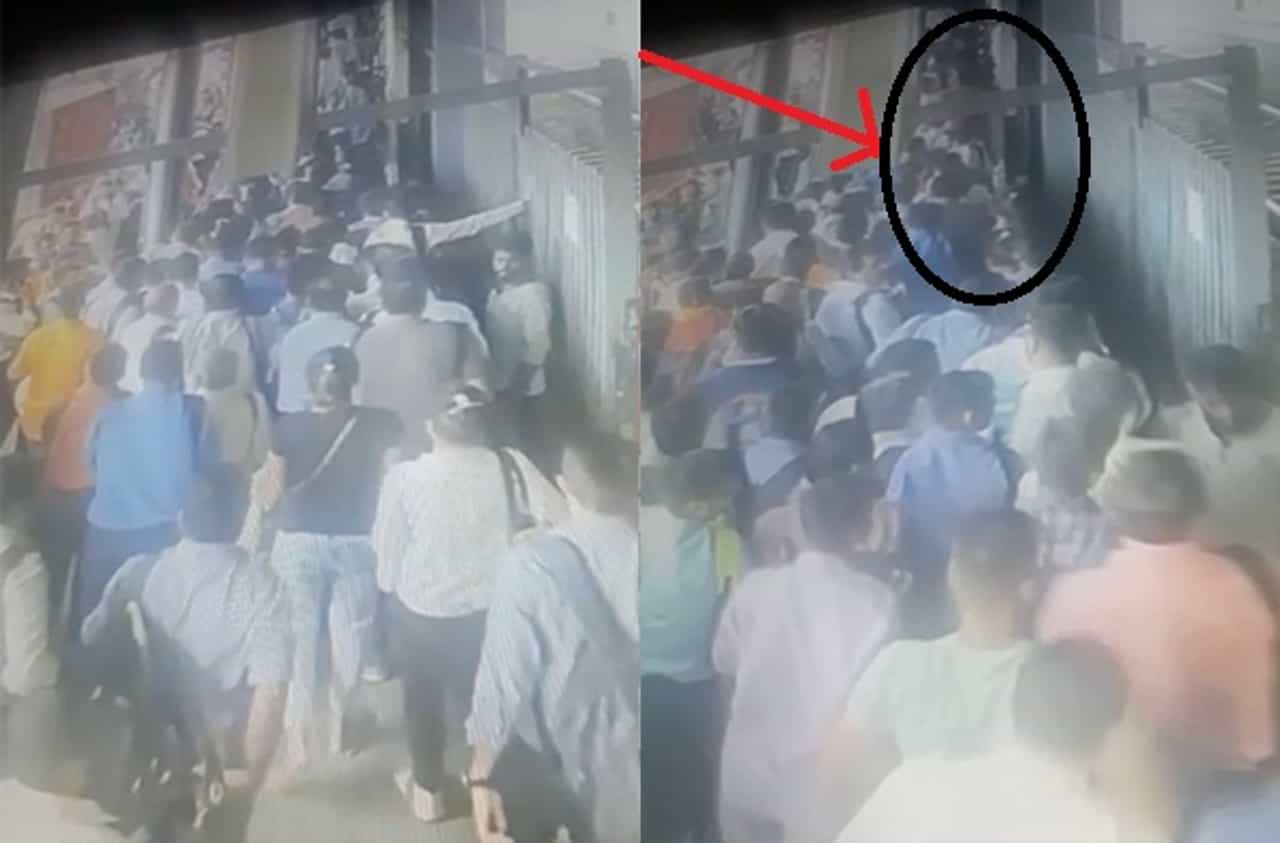सरकता जिना वर जाण्याऐवजी खालच्या दिशेने जाऊ लागल्याने प्रवासी एकमेकांवर आपटले. त्यापैकी दोघेजण किरकोळ जखमी झाले. हा प्रकार स्टेशनवरील सीसीटीव्हीमध्ये कैद झाला आहे.