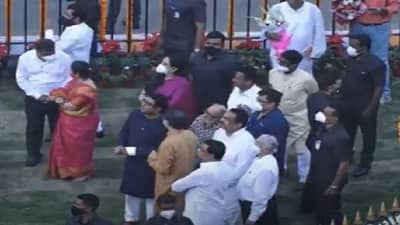 मुख्यमंत्री उद्धव ठाकरे हे संध्याकाळी 6 वाजता कार्यक्रमस्थळी पोहोचले. तत्पूर्वी 20 मिनिटे आधी राज ठाकरे कार्यक्रमस्थळी दाखल झाले होते. तेव्हा त्यांची भेट राष्ट्रवादी काँग्रेसचे नेते आणि अन्न व नागरी पुरवठा मंत्री छगन भुजबळ यांच्याशी झाली. त्यावेळी दोघांमध्ये काही संवादही झाला. त्यानंतर शिवसेना नेते आणि सार्वजनिक बांधकाममंत्री एकनाथ शिंदे यांनीही राज ठाकरे यांच्याशी संवाद साधला.