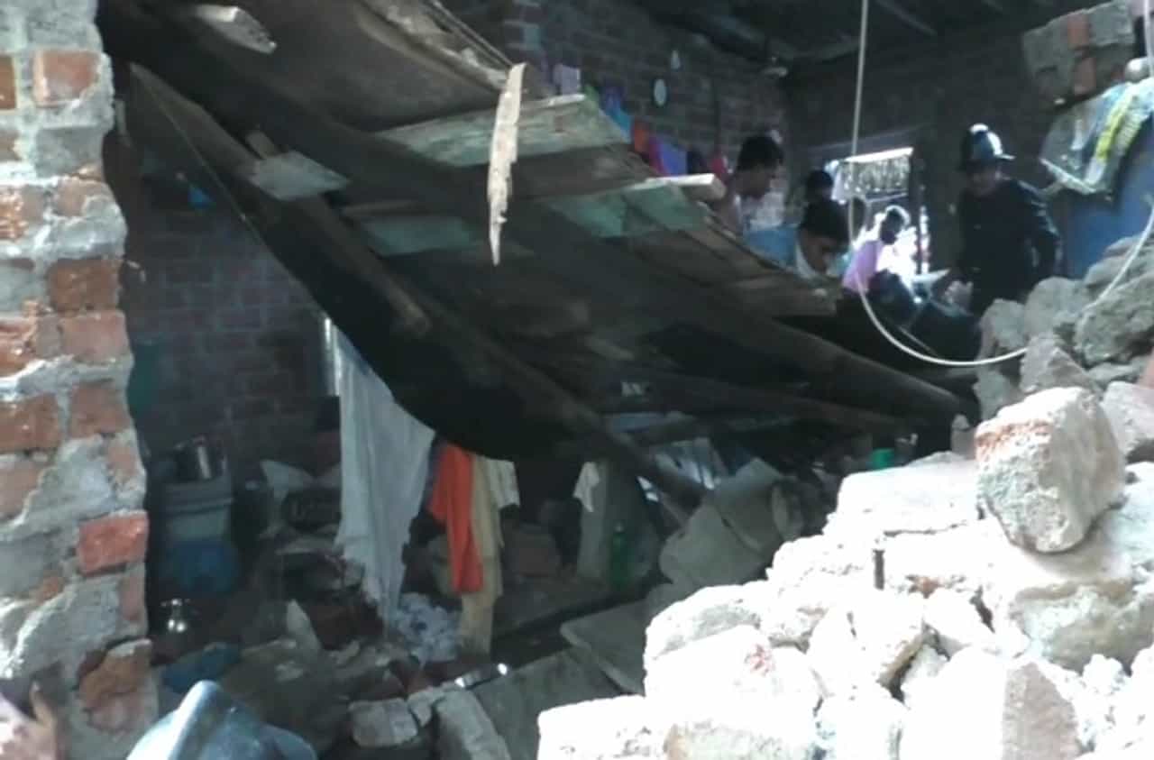 भिवंडी शहरातील अंजुरफाटा शिवाजीनगर येथे एक बैठ्या घराची भिंत कोसळून दुर्घटना झाली.