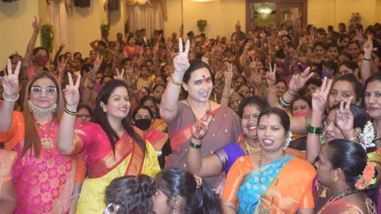 या कार्यक्रमाला महिला वर्ग मोठ्या संख्येने उपस्थित होता. त्यामुळे कार्यक्रमाला तोबा गर्दी झाली होती. काही महिलांनी तोंडाला मास्क लावले होते. तर काही अर्ध्याहून अधिक महिला मास्कशिवाय आल्या होत्या. हॉल पूर्णपणे भरून गेल्याने सोशल डिस्टन्सिंगचेही तीन तेरा वाजले होते. मात्र, कार्यक्रमासाठी आलेल्या महिलांचा उत्साह पाहण्यासारखा होता. कार्यक्रमाला आलेल्या महिलांनी चित्रा वाघ यांच्यासोबत सेल्फीही घेतले.