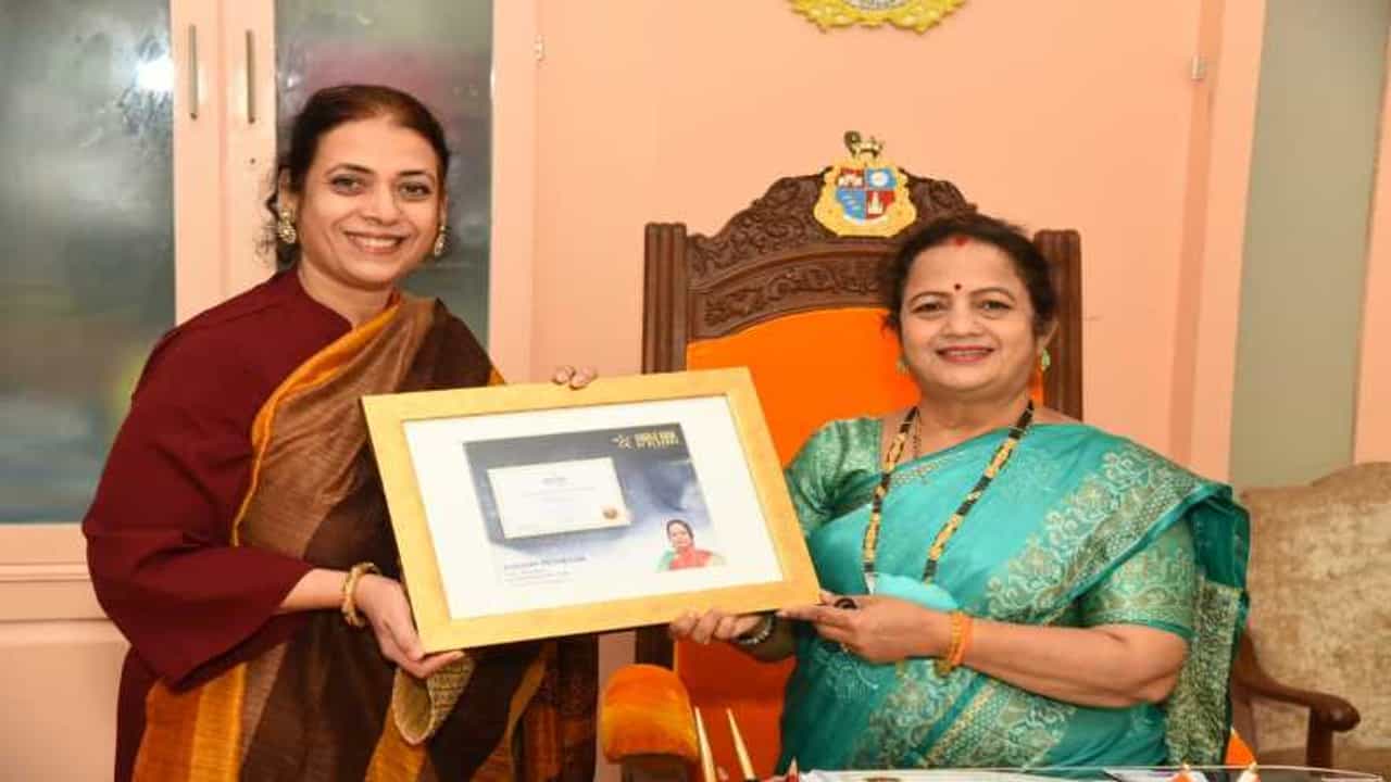 BMC Mayor Kishori Pednekar felicitated with Maharashtra World Book of Records London Certificate of Commitment outstanding work during corona