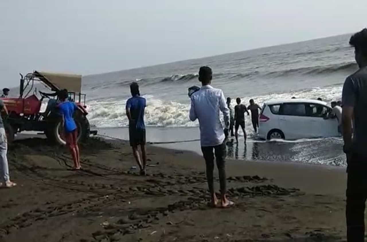 कार बाहेर येत नसल्याने ती बाहेर काढण्यासाठी ट्रॅकरची मदत घ्यावी लागली. पण ट्रॅक्टरनेही ती बाहेर निघाली नाही. शेवटी समुद्राच्या लाटात ती वाहत असतानाही दिसत होती. अखेर कशीबशी ही कार बाहेर काढण्यात आली. सुदैवाने या घटनेत कोणतीही जीवितहानी झाली नाही. पण ही ग्रॅण्डमस्ती या हौशी पर्यटकांना चांगलीच अंगलट आली.