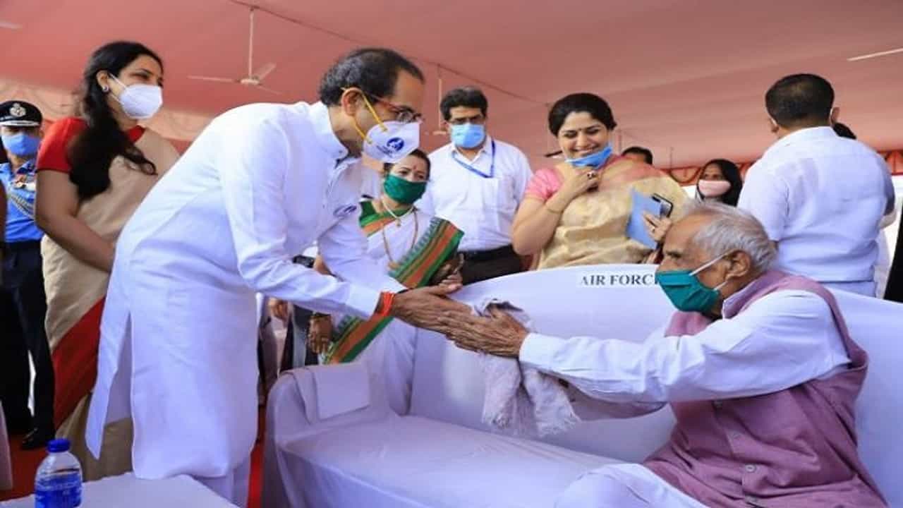 (Chief Minister Uddhav Thackeray meets senior freedom fighters at Shivaji Park after flag hoisting Republic Day)