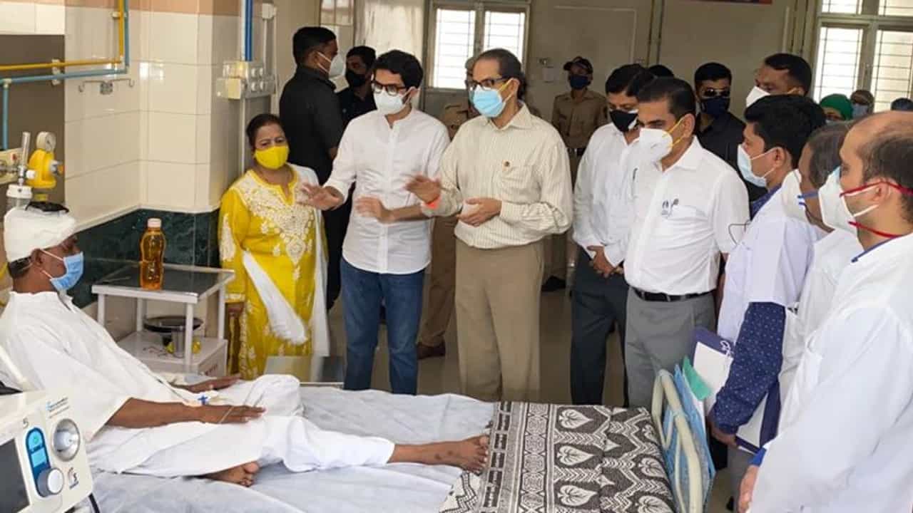 मुख्यमंत्री उद्धव ठाकरे यांनी आज सकाळी 11 वाजून 10 मिनिटांनी कांदिवलीच्या डॉ बाबासाहेब आंबेडकर पालिका रुग्णालयात ( शताब्दी रुग्णालय) जाऊन सदर दुर्देवी घटनेत जखमी झालेल्यांची विचारपूस केली. याप्रसंगी मुंबई उपनगर जिल्ह्याचे पालकमंत्री आदित्य ठाकरे, मुंबईच्या महापौर किशोरी किशोर पेडणेकर, महापालिका आयुक्त इकबाल सिंह चहल, उपनगर जिल्ह्याचे जिल्हाधिकारी मिलिंद बोरीकर, महापालिकेचे सह आयुक्त चंद्रशेखर चोरे, उपायुक्त विश्वास शंकरवार आणि संबंधित अधिकारी उपस्थित होते. यावेळी मुख्यमंत्र्यांनी रुग्णांची विचारपूस केली. दुर्घटना कशी घडली? तुमच्या कुटुंबातील सर्व सुखरूप आहेत ना? जास्त मार लागला नाही ना? आदी विचारपूस केल्याचं सूत्रांनी सांगितलं. तसेच डॉक्टरांशी चर्चा करून या दुर्घटनेतील गंभीर रुग्ण किती आहेत, किरकोळ मार लागलेले रुग्ण किती आहेत? कुणाची प्रकृती अधिक गंभीर तर नाही ना आदींचीही माहिती घेतल्याचं सूत्रांनी सांगितलं.