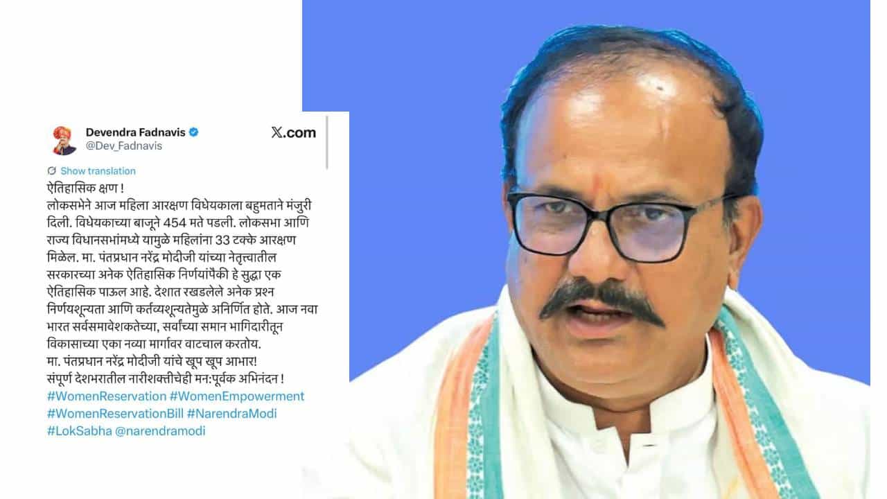 Harshvardhan Sapkal on Devendra Fadnavis: महिला आरक्षण विधेयकाच्या आडून मतदार संघ पुनर्रचनेचा भाजपचा डाव हाणून पाडला असा दावा विरोधक करत आहे. नारी शक्ती वंदन बिल हे काल दणकावून आपटले. विरोधकांची अभूतपूर्व एकजूट दिसली. त्यानंतर भाजपने या सर्व प्रकरणात विरोधकांवर हल्लाबोल सुरू केला आहे. विरोधक बिल नामंजूर करून त्याचा जल्लोष करत असल्याचा आरोप भाजप गोटातून करण्यात येत आहे. देशातील अनेक भागात भाजप आमदार, खासदार रस्त्यावर उतरले आहे. नारी शक्तीचा हा अवमान असल्याचा आरोप भाजप करत आहे. तर दुसरीकडे 2023 मध्ये महिला आरक्षण विधेयक विरोधकांच्या पाठिंब्यावरून मंजूर झाल्याचा दावा विरोधकांनी केला आहे. तर त्यावेळेसच भाजप आमदार, खासदारांचे ट्वीटच आता धडाधड समोर आणले जात आहेत. काँग्रेसचे प्रदेशाध्यक्ष हर्षवर्धन सपकाळ यांनी तर मुख्यमंत्र्यांवर मोठी तोफ डागली आहे. त्यांच्या ट्वीटने खळबळ उडवून दिली आहे.