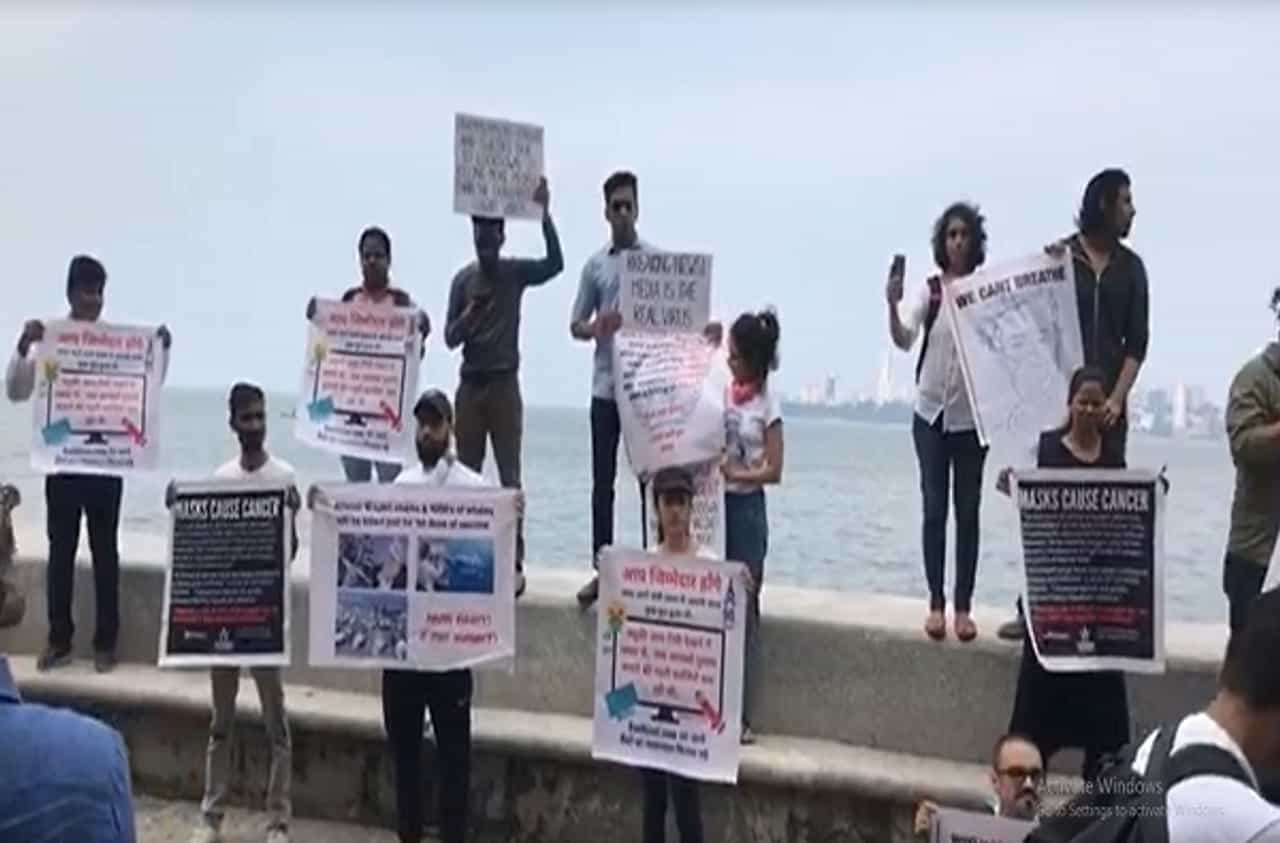 मुंबईकरांनो मास्क वापरु नका; मरीन ड्राईव्हवर अनोखं आंदोलन