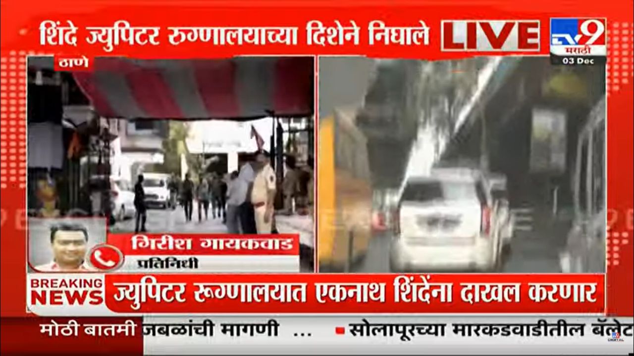 दरेगाववरुन दोन दिवसांत एकनाथ शिंदे ठाणे येथील निवासस्थानी आले. त्यानंतरही त्यांची प्रकृती पूर्ण बरी झाली नाही. आता ज्युपिटर हॉस्पिटलमधील तज्ज्ञ डॉक्टरांकडून त्यांच्यावर उपचार सुरू आहेत. त्यांना रुग्णालयात दाखल करण्यात येणार आहे. त्यासाठी ते ज्युपिटर रुग्णालयात पोहचले आहे. यापू्र्वी त्यांची डेंग्यूचा चाचणी केली होती. तो रिपोर्ट निगेटिव्ह आला आहे. परंतु त्यांना अशक्तपणा असल्याची डॉक्टरांनी सांगितले. यामुळे त्यांना पुन्हा आरामाचा सल्ला दिला आहे. दरम्यान, एकनाथ शिंदे यांची तब्येत अजूनही बरी नसल्याने आज ही एकनाथ शिंदे कुठेही बैठकीला जाणार नाही. मात्र दुपारी महापरिनिर्वाहादिन निम्मित अधिकाऱ्यांच्या होणाऱ्या बैठकीला व्हिसीद्वारे उपस्थित राहणार आहेत.
