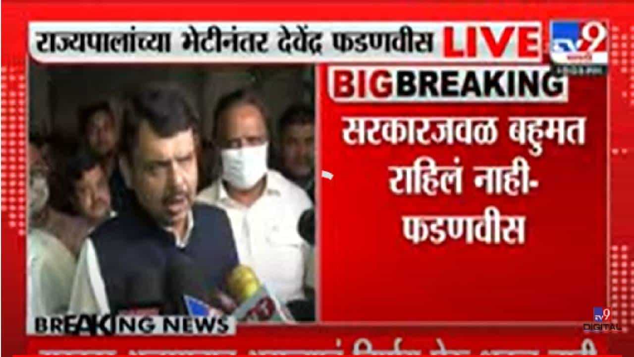 देवेंद्र फडणवीस यांनी आज दिल्लीचा दौरा केला. या दौऱ्यामध्ये त्यांनी केंद्रीय गृहमंत्री अमित शाहा आणि भाजपाचे राष्ट्रीय अध्यक्ष जे. पी. नड्डा यांची भेट घेतल्यानंतर, ते मुंबईत परतले. त्यानंतर भाजपाचे नेते प्रवीण दरेकर, आशिष शेलार यांच्यसह इतर अनेक नेते त्यांच्या सागर या निवासस्थानी आले. त्यानंतर फडणवीस आणि सर्व नेते हे राज्यपालांना भेटण्यासाठी गेले आहेत. या भेटीतून फडणवीसांनी राज्यातील सरकार अल्पमतात आल्याचे सांगून राज्यपालांकडे विश्वासदर्शक ठरावाची मागणी केली असल्याची माहिती आहे.