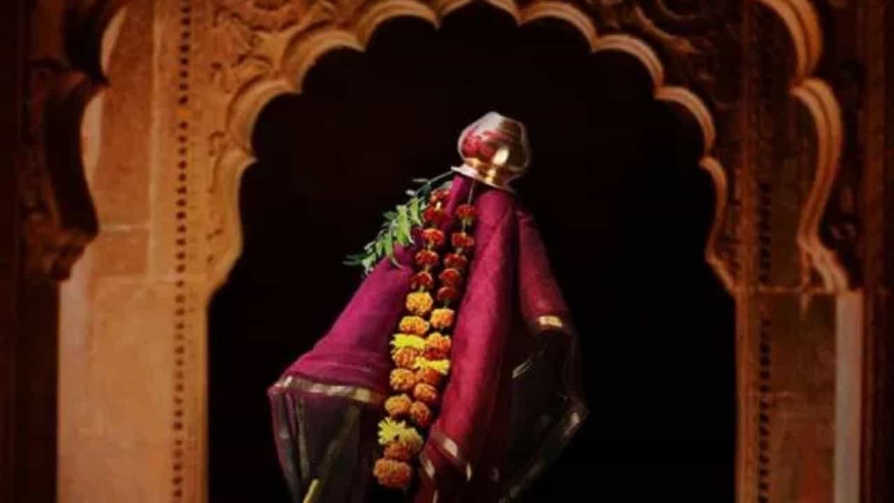 महाराष्ट्रातील पहिली गुढी तुळजाभवानी मंदिराच्या शिखरावर