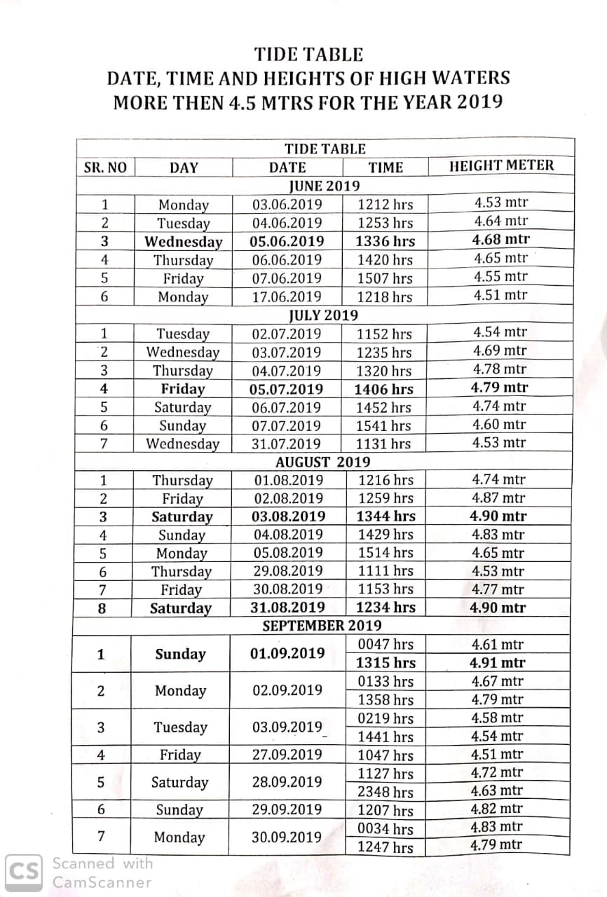समुद्रात दर दिवशी भरती आणि ओहोटी असते. पावसाळ्यादरम्यान समुद्रात उंचंच उंच लाटा उसळतात. अशावेळी मुसळधार पाऊस असल्यास मुंबईच्या सकल भागात पाणी तुंबते. त्या दृष्टीने यंदाच्या पावसाळ्यात मुंबई महानगर पालिकेने समुद्रातील मोठ्या भरतीच्या तारखा प्रसिद्ध केल्या आहेत.