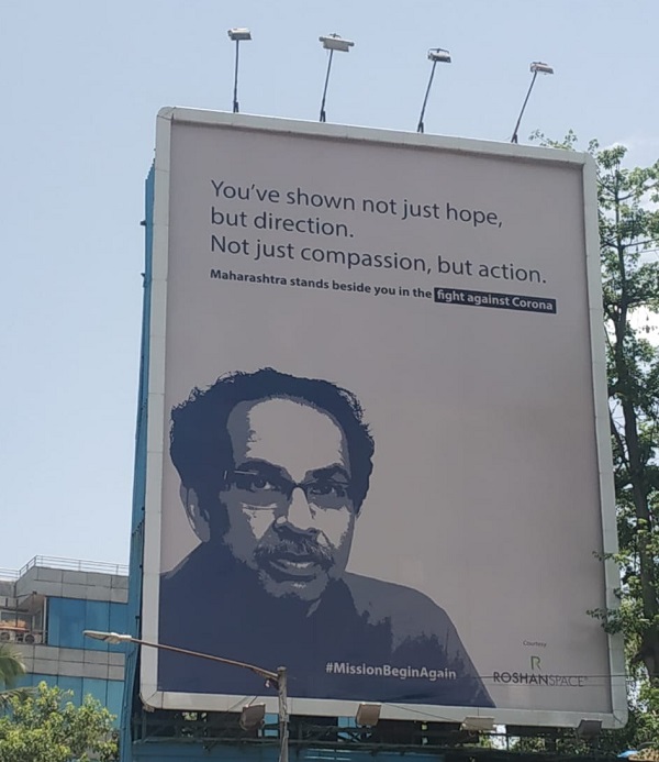 मुंबईत ठिकठिकाणी लावलेले मुख्यमंत्री उद्धव ठाकरे यांचे हे होर्डिंग एका खासगी जाहिरात एजन्सीकडून लावण्यात आले आहेत. एकीकडे महाराष्ट्रातील कोरोना रुग्णांच्या संख्येने चीनलाही मागे टाकले आहे. दुसरीकडे खासगी जाहिरात एजन्सीच्या माध्यमातून मुख्यमंत्री उद्धव ठाकरे यांची प्रतिमा उंचावण्याचे प्रयत्न सुरु आहेत. यावरुन विरोधीपक्षाने सरकारवर टीकेची झोड उठवली आहे. राज्य सरकार आणि मुंबई महानगरपालिका कोरोना रोखण्यात अपयशी ठरल्याचा आरोप भाजपने केला आहे.