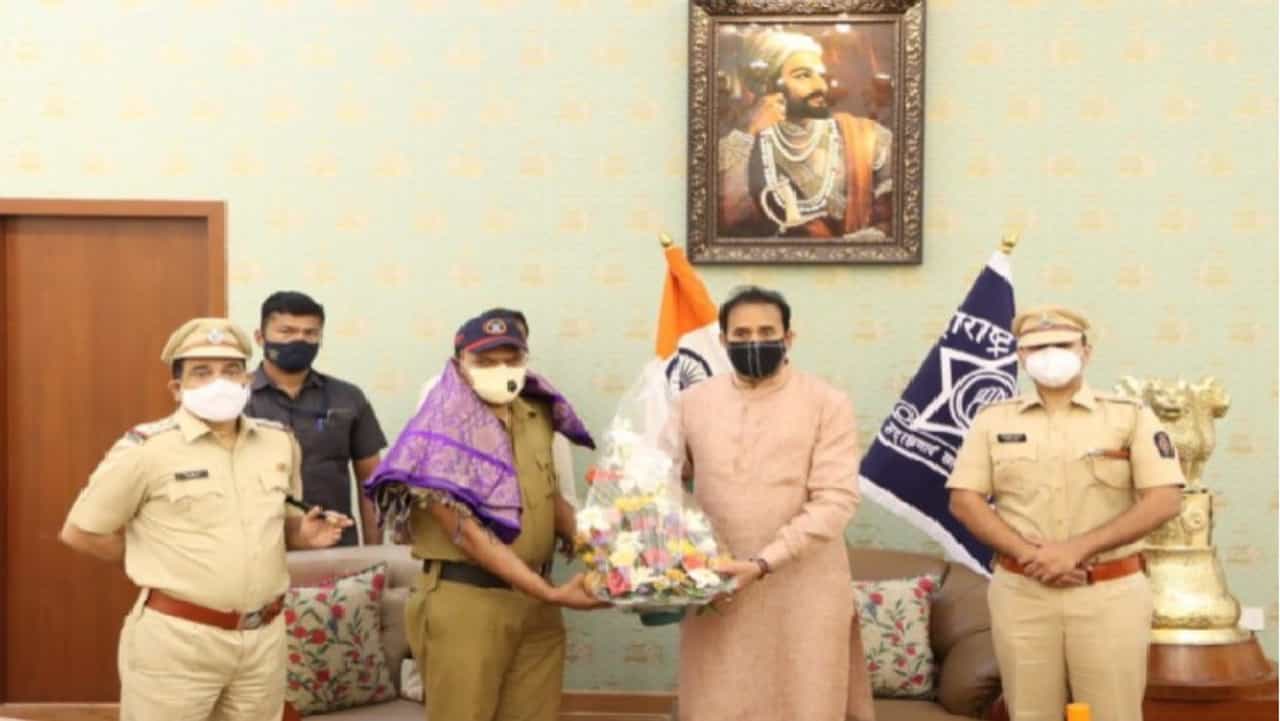 मुंबई : रेल्वे पोलिस दलातील पोलीस कॉन्स्टेबल सुजीतकुमार निकम यांनी स्वतःचे प्राण धोक्यात टाकून दहिसर रेल्वे स्थानकावर एका 60 वर्षीय व्यक्तीचे प्राण वाचवले. त्यांचा या कार्याबद्दल खुद्द गृहमंत्री अनिल देशमुख यांच्या हस्ते ज्ञानेश्वरी बंगल्यावर सत्कार करण्यात आला. (Home Minister Anil Deshmukh felicitates a police officer Sujitkumar Nikam)