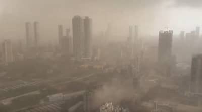 मुंबईतील धुळीचे लोट पाहून आणि आभाळाला आलेला मातीचा रंग पाहून हैराण व्हायला झाले. इतके दिवस आपण धुळीची वादळं दुबईत होत असल्याचे ऐकूण किंवा काही जणांनी स्वत: अनुभवलेली देखील असतील. मुंबईत असे धुळीचे वादळ पहिल्यांदा अनुभवायाला मिळाले. या धुळीच्या वादळाचा व्हिडीओ समाजमाध्यमावर व्हायरल झाला आहे. लोअर परळ येथील उत्तुंग इमारतीवरुन हा व्हिडीओ चित्रित केला असावा असे वाटत आहे. या व्हिडीओत धुळीचे लोट अगदी आभाळात गेल्याचे दिसत आहे. आणि मुंबईच्या गगनचुंबी इमारतीमध्ये हे वादळ घोंघावताना दिसत आहे. या व्हिडीओला समाजमाध्यमावर खुप पाहीले जात आहे.