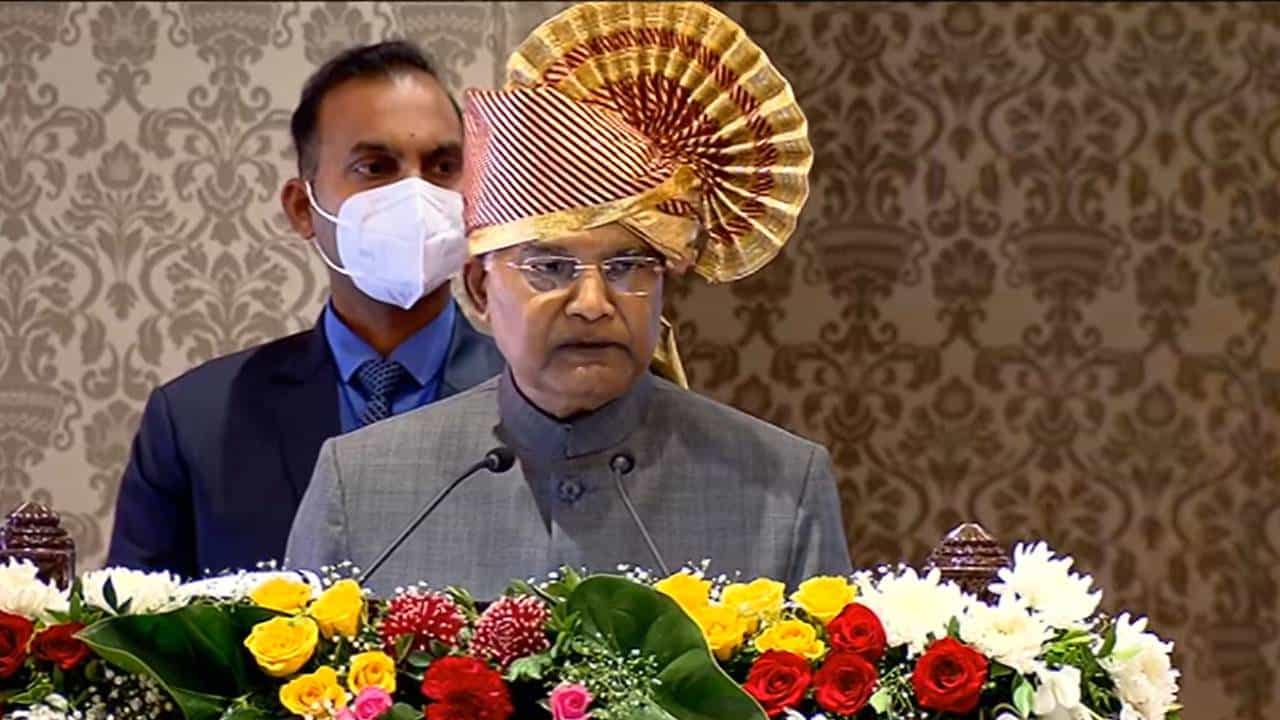 मुंबई: गेल्या साडेचार वर्षात मी 12 वेळा महाराष्ट्रात आलो आहे. महाराष्ट्राशी (maharashtra) माझा ऋणानुबंध राहिला आहे, असं सांगतानाच महाराष्ट्राचा अर्थ सांगायचा झाला तर भाषा विज्ञानाकडे जायची गरज नाही. तुमचे हृदयच महाराष्ट्राचा अर्थ सांगेल. आमचा महाराष्ट्र म्हणजे महान राष्ट्र. अर्थातत भारताचं महान राज्य आणि क्षेत्र, अशा शब्दात राष्ट्रपती रामनाथ कोविंद ( President ramnath kovind) यांनी महाराष्ट्राचा गौरव केला. महाराष्ट्राचा गौरव करताना महाराष्ट्राचा नेमका अर्थ काय हे त्यांनी मराठीतून (marathi) सांगितलं. राष्ट्रपती रामनाथ कोविंद आज मुंबईत आहेत. त्यांच्या हस्ते आज राजभवनातील दरबार हॉलचं लोकार्पण करण्यात आलं. यावेळी राज्यपाल भगतसिंह कोश्यारी, मुख्यमंत्री उद्धव ठाकरे, उपमुख्यमंत्री अजित पवार आणि सार्वजनिक बांधकाम मंत्री अशोक चव्हाण उपस्थित होते. यावेळी राष्ट्रपती बोलत होते.