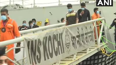 (Indian Navy crew from Barge P305 off the coast of Mumbai rescued out of INS Kochi)
