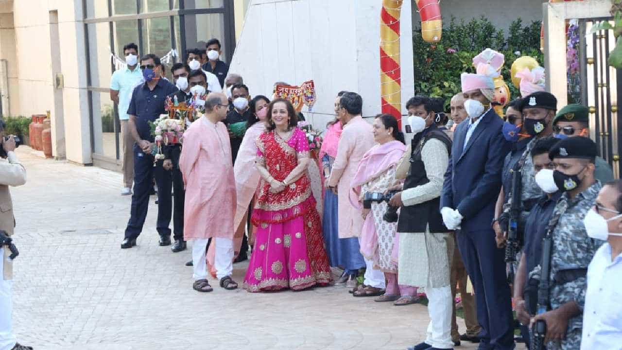 ईशा आणि आनंद यांच्या स्वागतासाठी अंबानी कुटुंबाने खास तयारी केली होती.