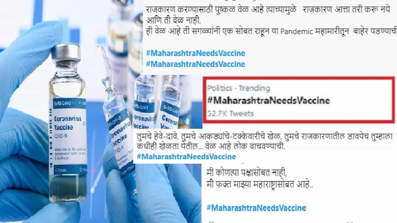 सोशल मीडियावर #MaharashtraNeedsVaccine असा हॅशटॅग ट्विटरवर ट्रेंड होतोय.