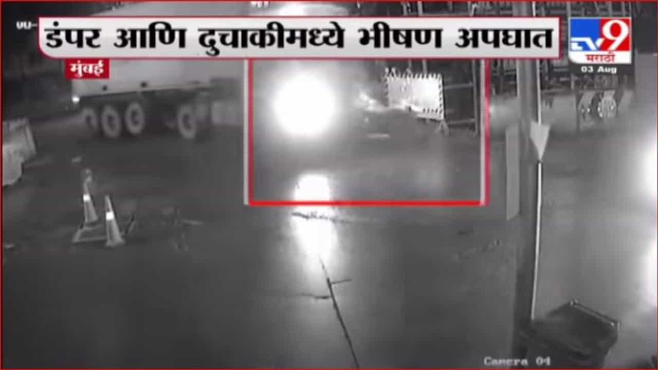 VIDEO: मुंबईच्या जेव्हीएलआर रोडवर भीषण अपघात; भरधाव वेगातील डंपरनं दुचाकीस्वाराला उडवलं