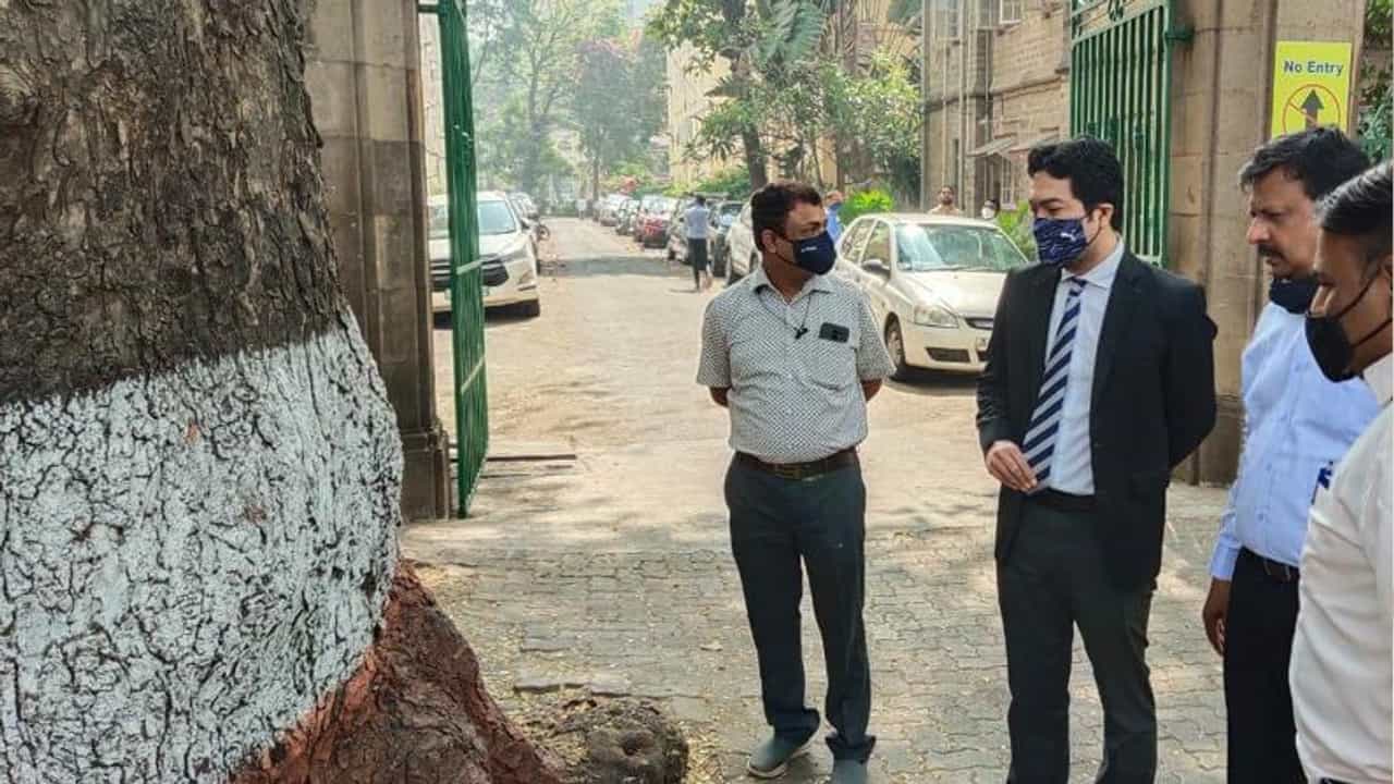 >> गेरु व चुन्याचा रंग दिलेली झाडे ही सार्वजनिक संस्थेच्या मालकीची असल्याचे प्रतिकात्मक पद्धतीने अधोरेखित होते. (malaysia sultan visit mumbai, observe bmc garden)