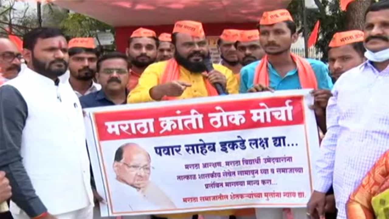 मराठा क्रांती ठोक मोर्चाचे गेल्या तीन दिवसांपासून आझाद मैदानात आंदोलन सुरू आहे. मराठा आरक्षण, नोकर भरती, नोकर भरतीतील नियुक्त्या आदी विविध मुद्द्यांवर हे आंदोलन करण्यात येत आहे. काल रविवारी विधानपरिषदेचे विरोधी पक्षनेते प्रवीण दरेकर यांनी या मोर्चेकऱ्यांची भेट घेतली होती. आजही मराठा क्रांती ठोक मोर्चाचं आझाद मैदानात आंदोलन सुरू आहे. याच वेळी आझाद मैदानात दिल्लीतील शेतकऱ्यांना पाठिंबा देण्यासाठी राज्यातील शेतकऱ्यांनी आंदोलन सुरू केलं आहे. त्याची दखल घेऊन राष्ट्रवादीचे सर्वेसर्वा शरद पवार हे आज आझाद मैदानात येऊन शेतकऱ्यांना पाठिंबा देणार आहेत. या पार्श्वभूमीवर आपल्या मागण्यांकडेही पवारांचं लक्ष वेधावं म्हणून मराठा आंदोलकांनी ‘पवार साहेब, इकडेही लक्ष द्या’, असा मजकूर लिहिलेले बॅनर्स आझाद मैदानात झळकवले आहेत.