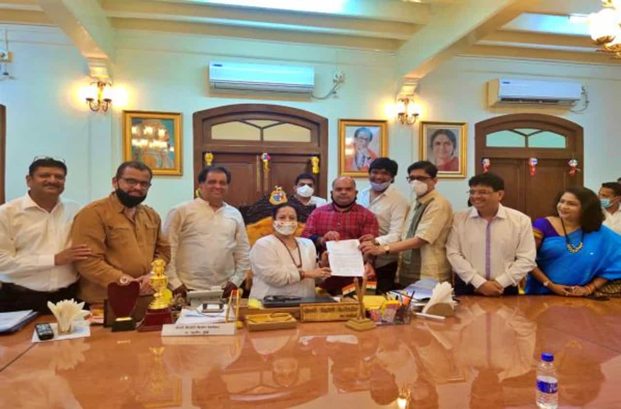 मराठी नाट्य व्यावसायिक निर्माता संघाच्या पदाधिकाऱ्यांनी आज (23 नोव्हेंबर) मुंबईच्या महापौर किशोरी किशोर पेडणेकर यांची भायखळा येथील महापौर निवासस्थानी भेट घेऊन निवेदन सादर केले. यावेळी मराठी नाट्य व्यावसायिक निर्माता संघाचे अध्यक्ष संतोष काणेकर, उपाध्यक्ष ज्ञानेश महाराव, प्रमुख कार्यवाह राहुल भंडारे, सिने अभिनेते शरद पोंक्षे, सुशील आंबेकर, अशोक नारकर, दिगंबर प्रभू हे मान्यवर उपस्थित होते.