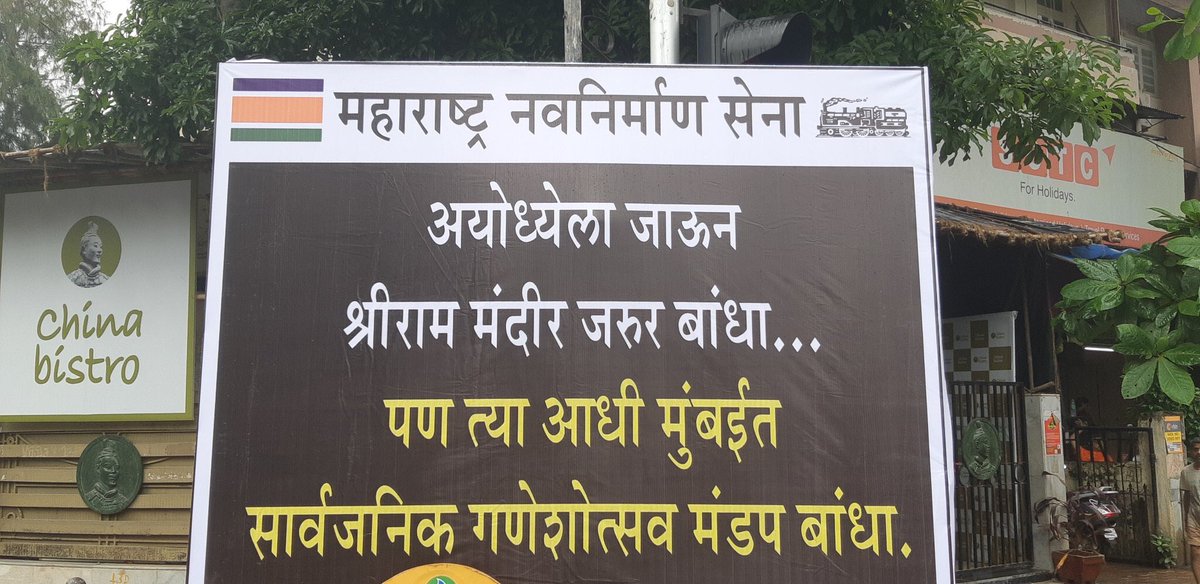 “अयोध्येला जाऊन श्रीराम मंदिर जरुर बांधा, पण त्याआधी मुंबईत सार्वजनिक गणेशोत्सव मंडप बांधा” असे पोस्टर्सही मनसेने यापूर्वी लावले होते.