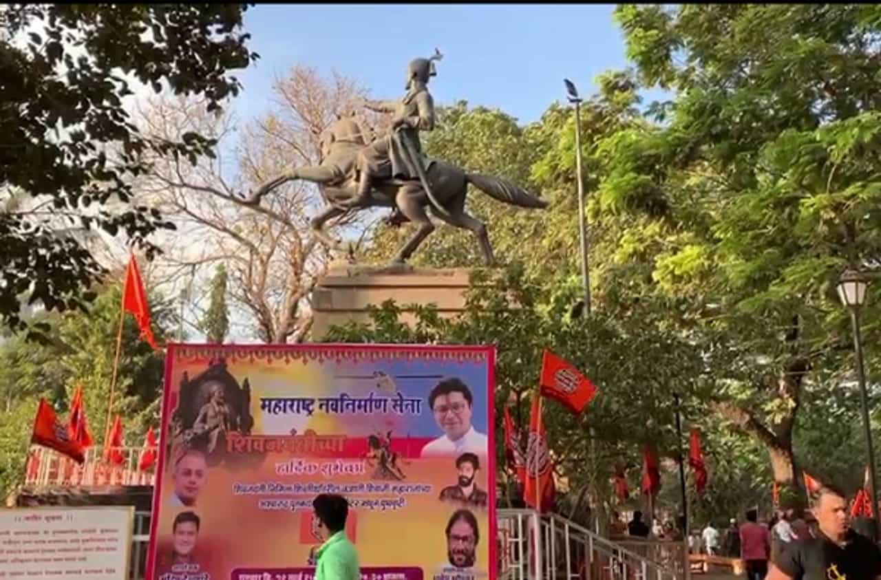 भगवा पोशाख घालून मनसेच्या कार्यकर्त्यांनी शिवतीर्थावरील छत्रपती शिवाजी महाराजांच्या प्रतिमेला पुष्पहार अर्पण केला. मनसैनिकांकडून शिवरायांना मानाचा मुजराही देण्यात आला. गुरुवारी सकाळीच शिवरायांना मानवंदना देण्यात आली.