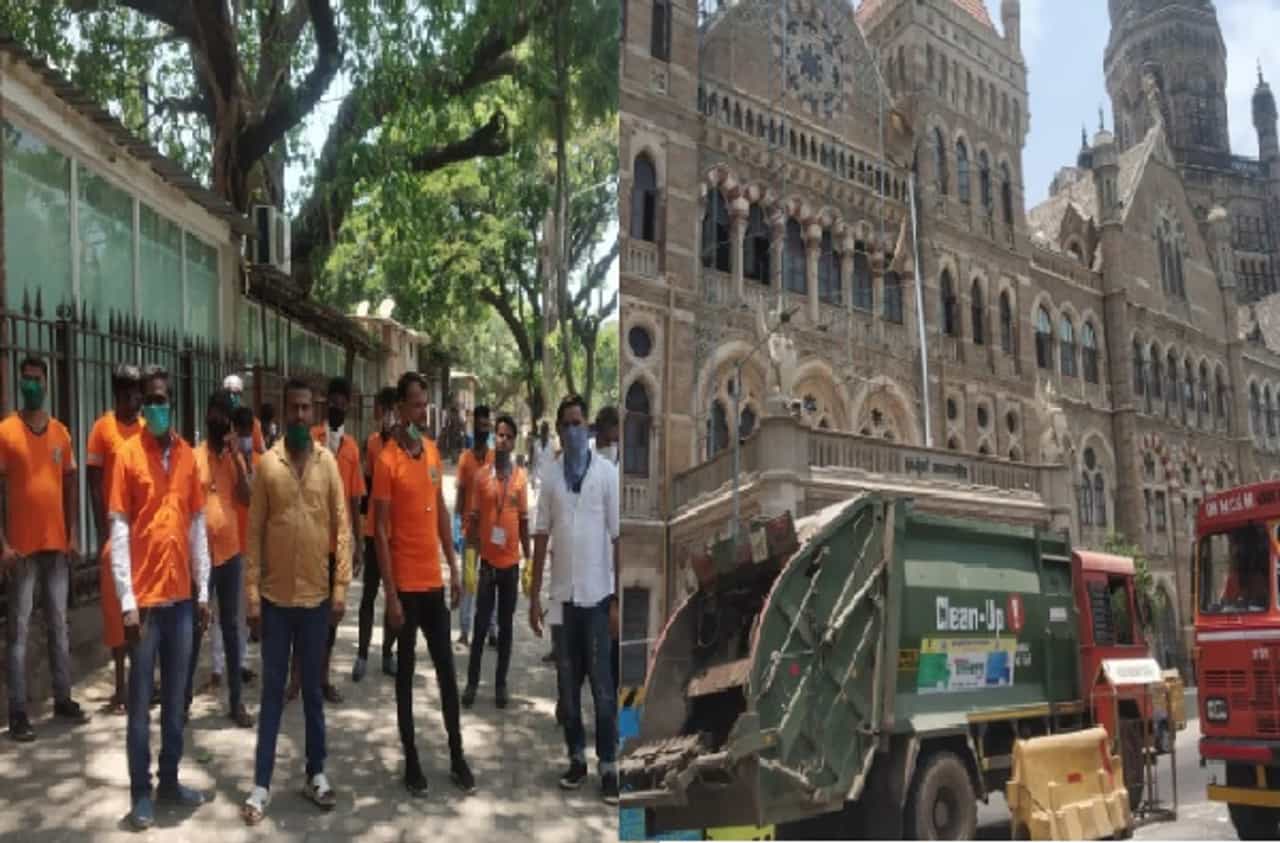 कंत्राटी सफाई कर्मचाऱ्यांनी आपल्याला आरोग्याच्या सुरक्षेसाठी पीपीई किट्स, मास्क मिळत नसल्याची तक्रार केली आहे. (Mumbai BMC Contract Based Cleaning Staff Protest)