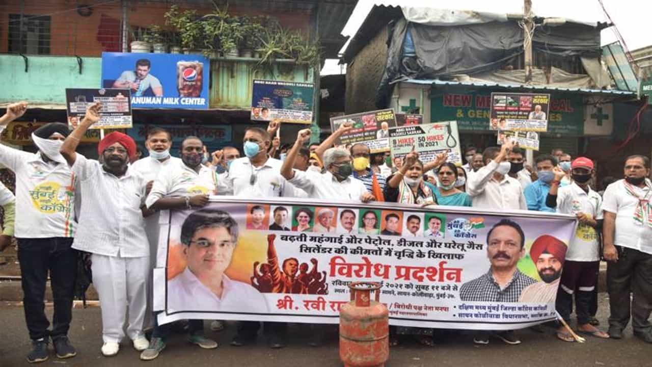 दरम्यान काँग्रेस पक्षाने महागाई व इंधन दरवाढीविरोधात 10 दिवसांचे आंदोलन सुरू केलेलं आंदोलन आजही सुरूच आहे. आजही काँग्रेसच्या कार्यकर्त्यांनी रस्त्यावर उतरून भाजप सरकारचा निषेध नोंदवला. काँग्रेसच्या महिला कार्यकर्त्यांनी रस्त्यावरच चुली पेटवून भाकरी शेकल्या, तर पुरुष कार्यकर्त्यांनी सायकल आणि बैलगाडीतून प्रवास करत केंद्रातील मोदी सरकारचा निषेध नोंदवला. काही ठिकाणी महागाईची तिरडी काढण्यात आली, तर काही ठिकाणी मोटारसायकल आणि गॅस सिलिंडरची अंत्ययात्रा काढण्यात आली. वाढत्या महागाईच्याविरोधात काँग्रेसने राज्यभरात अनोखं आंदोलन करत सरकारचा निषेध नोंदवला आहे. (mumbai congress protest in mumbai against fuel price hike)