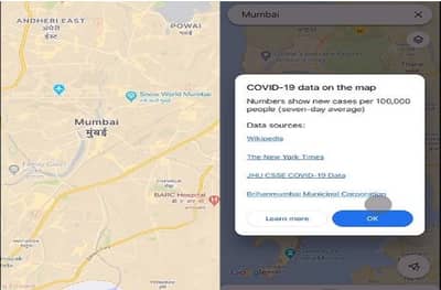 गुगल मॅपवर “कोव्हिड 19 इन्फो” हा पर्याय निवडल्यानंतर बृहन्मुंबई महानगरपालिका या पर्यायावर क्लिक केले तर थेट महानगरपालिकेच्या संकेतस्थळावर stopcoronavirus.mcgm.gov.in या पृष्ठावर कोरोना विषयक माहिती देखील पाहता येते.