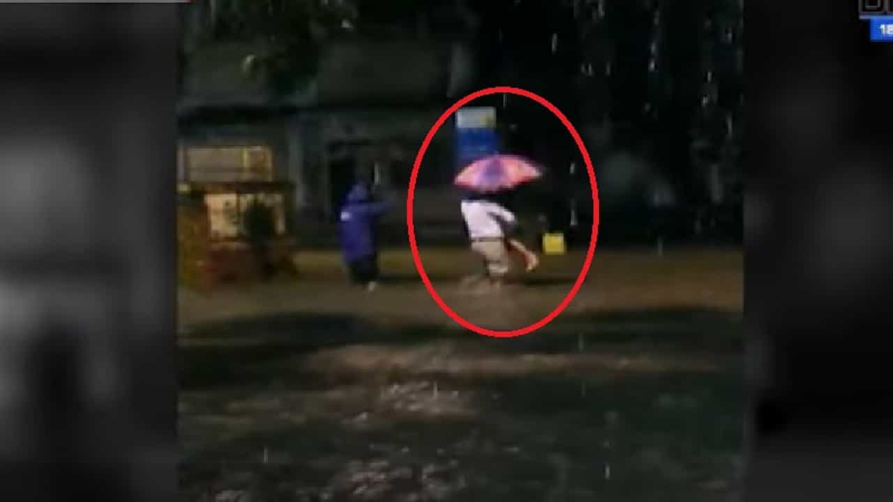 जोरदार पावसामुळे मुंबईतील कांदिवली भागातही पोटरीभर पाणी साचलं होतं. कांदिवली वाहतूक चौकीसमोर एक व्यक्ती साचलेल्या पाण्यातून आपल्या लहान मुलीला सुरक्षित ठिकाणी घेऊन जात होता. मात्र पाण्याच्या प्रवाहातून चालताना फुटपाथला अडखळून तो पडला.