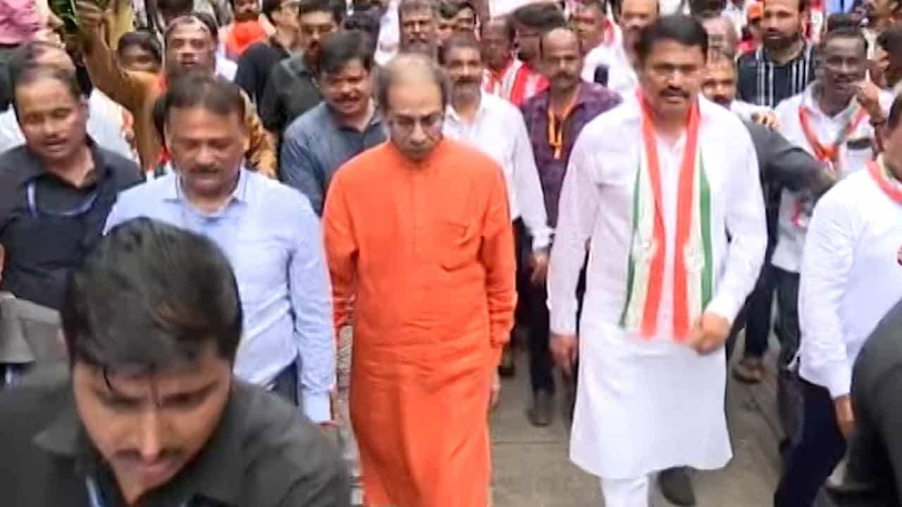 शरद पवार, उद्धव ठाकरे, नाना पटोले यांच्या नेतृत्वात मुंबईत ‘जोडे मारो’ आंदोलन केलं जात आहे. मुंबईतील हुतात्मा चौक ते गेट वे ऑफ इंडियापर्यंत हा मोर्चा सुरु आहे. शरद पवार आणि छत्रपती शाहू महाराज हे काही वेळ मोर्चामध्ये चालले. त्यानंतर गाडीतून हे दोघे गेट वे ऑफ इंडियाकडे रवाना झाले आहेत. गेट वे ऑफ इंडिया परिसरात असणाऱ्या छत्रपती शिवाजी महाराज यांच्या पुतळ्याला अभिवादन करत मोर्चा संपेन. यावेळी महाविकास आघाडीचे नेते संबोधित करतील.