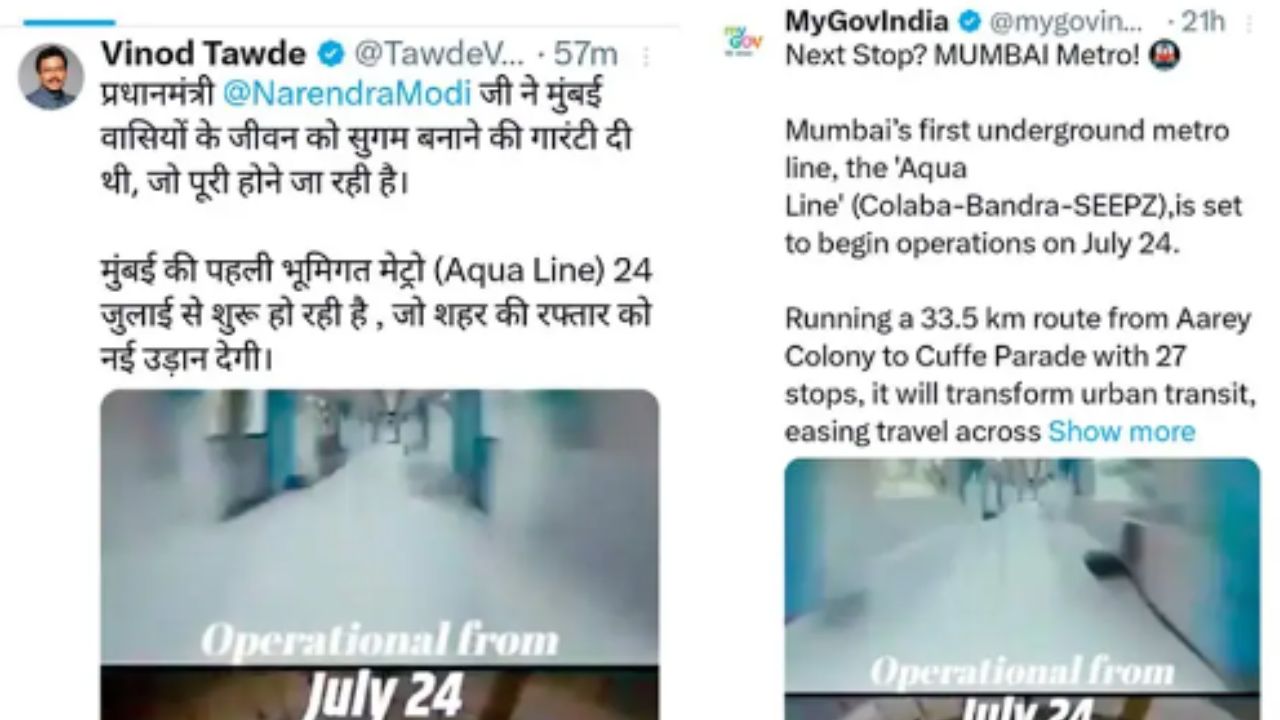 मुंबईकरांना लवकरच नवीन भेट मिळणार आहे. मुंबईकर मेट्रो 3 ची वाट पाहत होते. ती लवकरच सुरु होणार आहे. 2017 पासून सुरु असणाऱ्या या भूमिगत मेट्रो प्रकल्पाचे काम पूर्ण झाले आहे. यामुळे 37 हजार कोटींचा मुंबई मेट्रो लाइन 3 (Mumbai Metro Aqua Line) प्रकल्प कधीपासून सुरु होणार आहे, त्याची प्रतिक्षा मुंबईकरांना लागली आहे. एकूण 33.5 किलोमीटर लांबीचा हा प्रकल्प ‘कुलाबा-वांद्रे-सिप्झ’ नावाने हा प्रकल्प ओळखला जातो. या प्रकल्पासंदर्भात भाजप नेते विनोद तावडे यांनी एक ट्विट केले होते. त्यामध्ये 24 जुलैपासून हा प्रकल्प सुरु होणार असल्याचे म्हटले होते. परंतु त्यानंतर ते ट्विट डिलिट केले. त्यामुळे हा प्रकल्प नेमका कधी सुरु होणार? हा प्रश्न मुंबईकरांना पडला आहे.