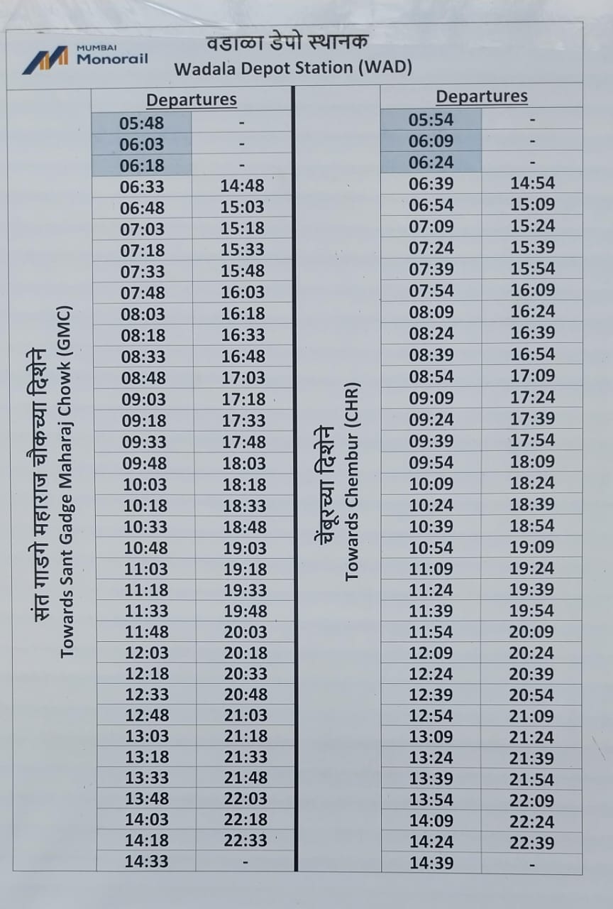 मुंबई मोनोरेलने प्रवास करणाऱ्या प्रवाशांसाठी आनंदाची बातमी आहे. मोनोरेलचे नवीन वेळापत्रक 2 ऑक्टोबरपासून लागू झाले आहे. त्यामुळे प्रवाशांच्या वेळेत बचत होणार आहे.