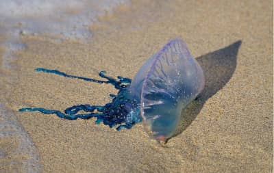 ३) जेलीफिशचा दंश झालेले स्पर्शक काळजीपूर्वक काढून टाकावे.
