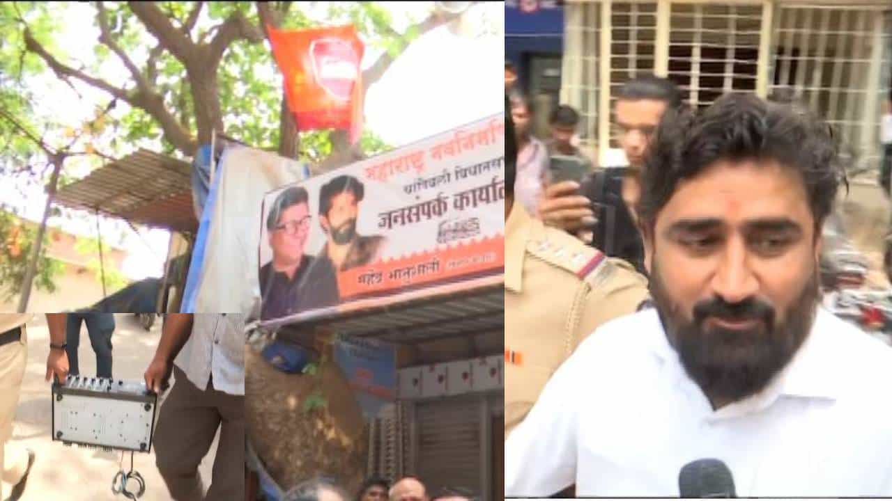 राज ठाकरे यांनी शिवाजी पार्कवरील सभेत हनुमान चालिसा लावण्यासंदर्भात वक्तव्य केलं होतं. त्यानंतर महेंद्र भानुशाली यांनी त्यांच्या चांदिवली येथील कार्यालयाबाहेर भोंगे लावले होते. सकाळी कार्यालयाबाहेर ढोल ताशे देखील लावण्यात आले होते. अखेर पोलिसांनी मनसेच्या कार्यालयाबाहेरील भोंगे जप्त केले आहेत. तर, महेंद्र भानुशाली यांना पोलिसांनी ताब्यात घेतलं आहे. दुसरीकडे लाऊडस्पीकर आणि इतर साहित्य पोलिसांनी जप्त केलं आहे.