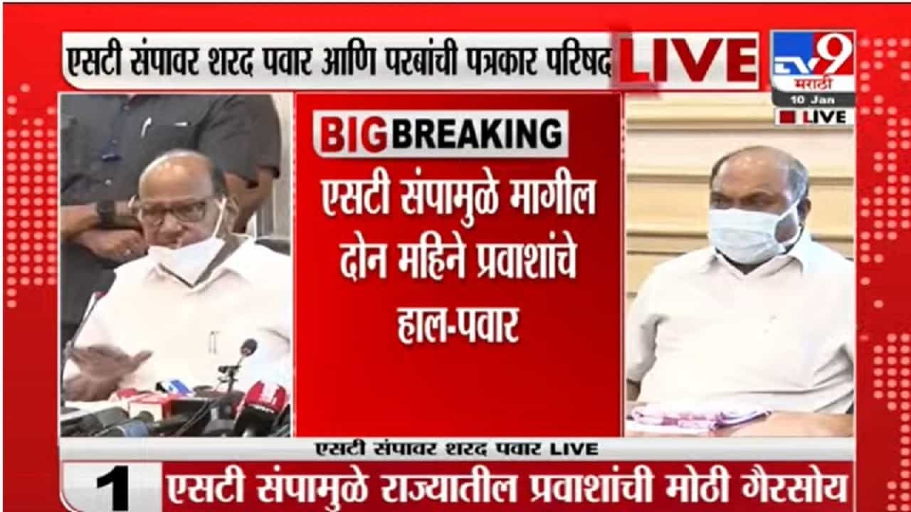 मुंबई : एसटी कर्मचाऱ्यांच्या संपावर तोडगा काढण्यासाठी सह्याद्री अतिथीगृहमध्ये राष्ट्रवादीचे अध्यक्ष शरद पवार, परिवहन मंत्री अनिल परब आणि एसटी कर्मचाऱ्यांच्या 22 संघटनांसोबत बैठक झाली. सुमारे चार तास ही बैठक चालली. या बैठकीनंतर एसटी कर्माचारी संघटना, शरद पवार आणि अनिल परब यांची संयुक्त पत्रकार परिषद झाली. या पत्रकार परिषदेत शरद पवार यांनी एसटी कर्मचाऱ्यांना कामावर रुजू होण्याचं आवाहन करीत त्यांच्या मागण्यांबाबतही स्पष्टीकरण दिले.