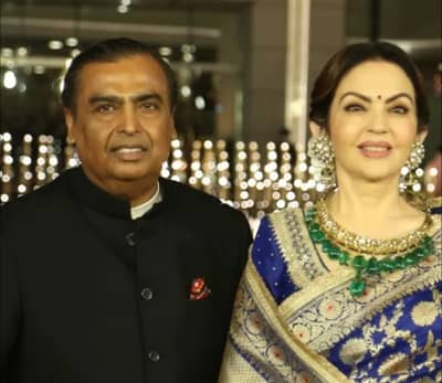या खास सोहळ्यासाठी नीता अंबानी यांनी निळ्या रंगाची बनारसी सिल्क साडी नेसली होती. ज्यामुळे त्यांचा लूक एकदम फ्रेश दिसत होता. साडीवर तांबे आणि सोन्याच्या जरीच्या धाग्यांनी फुलांचा आकृती होती. फुलांचे डिझाईनही दिसत होते. मॅचिंग ब्लाउजमुळे नीता अंबानी यांचा लूक अधिक परफेक्ट झाला होता.