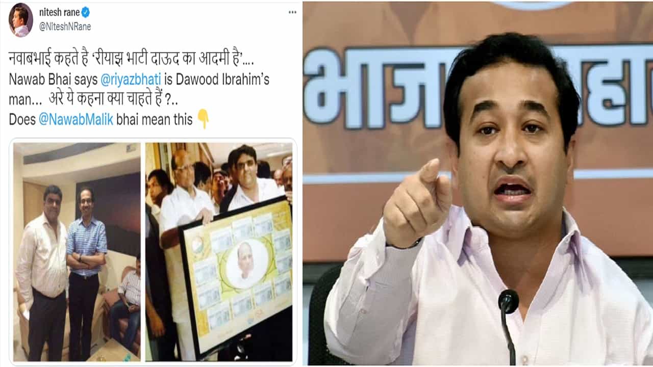 Nitesh Rane tweet the images of Riyaz Bhati with Uddhav Thackeray and Sharad Pawar gave answer to Nawab Malik