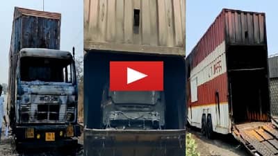 (Palghar Container catches Fire BMW Mercedes Volvo Luxury Cars charred)