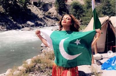 मुंबई : बॉलिवूड अभिनेत्री राखी सावंत नेहमीच आपल्या भूमिकांऐवजी इतर वादांमुळेच चर्चेत असते. यावेळीही ती अशाच एका कारणाने चर्चेत आहे. राखी सावंतचा पाकिस्तानी ध्वजासोबतचा एक फोटो व्हायरल झाला आहे. या फोटोत राखी एका नदीच्या किनाऱ्यावर उभी आहे. तिने आपल्या छातीवर पाकिस्तानचा राष्ट्रध्वज घेतलेला दिसत आहे.