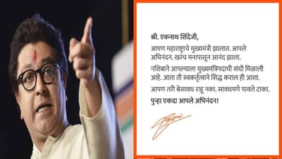 बंडखोरी नाट्यनंतर ज्या प्रकारे एकनाथ शिंदे यांना मुख्यमंत्री पद मिळाले आहे त्याबाबतही बोलताना त्यांनी एकनाथ शिंदे यांना एक प्रकारचा इशाराही दिला आहे. राज ठाकरे यांनी त्यांच्या ट्विटमध्ये नशिबाने तुम्हाला मुख्यमंत्री पदाची संधी मिळाली असली तरी ती तुम्ही स्वकर्तृत्वाने सिद्ध कराल अशी इच्छाही त्यांनी व्यक्त केली आहे. मुख्यमंत्री पदासाठी देवेंद्र फडणवीस यांच्या नावाची चर्चा होती, मात्र पत्रकार परिषदेत एकनाथ शिंदे यांच्या नावाची घोषणा झाल्यानंतर मात्र जोरदार चर्चा झाली. त्याचवेळी राज ठाकरे यांच्याही ट्विटची चर्चा झाली.