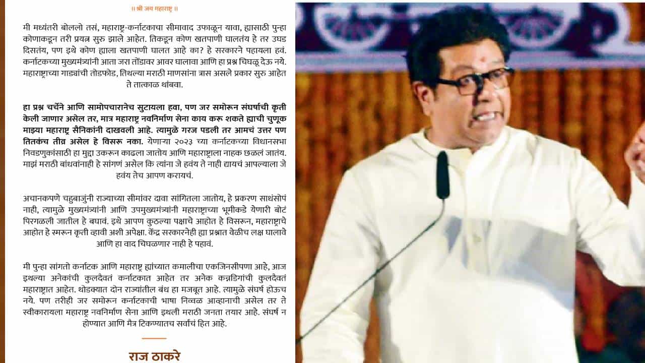 त्यातून हे प्रकरण अधिक चिघळू नये यासाठी कर्नाटकच्या मुख्यमंत्र्यांनी आता तरी तोंडावर आवर घालावा असा टोला राज ठाकरे यांनी लगावला आहे.