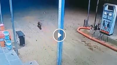 रत्नागिरी : रत्नागिरी जिल्ह्यातील संगमेश्वर तालुक्यातील एका पेट्रोल पंपावर बिबट्याचा थरार पाहायला मिळाला. मध्यरात्रीच्या वेळेला बिबट्याने रोड क्रॉस करुन पेट्रोल पंपावर प्रवेश केला. तसंच पेट्रोलवरच त्याने एका कुत्र्याचा फडशा पाडला. यावेळी तिथे उपस्थित कर्मचाऱ्याची चांगलीच पाचावर धारण बसली. (Ratnagiti Sangameshwar petrol Pump leopard Entry Video)