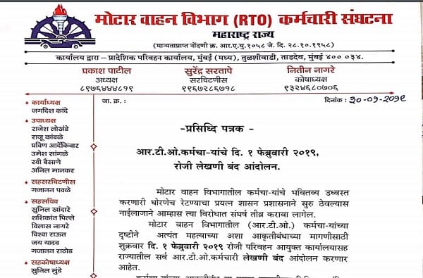 RTO कर्मचाऱ्यांची लेखणी बंद आंदोलनाची हाक