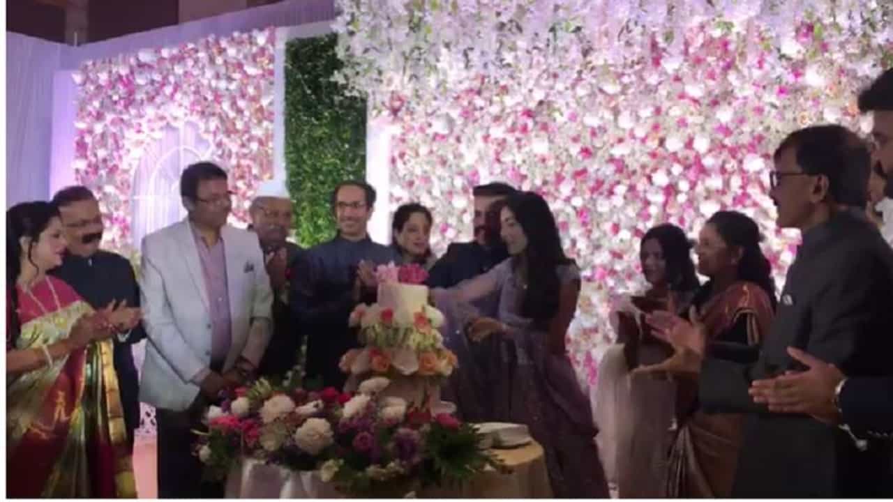 संजय राऊत यांची कन्या पूर्वशी हिने या सेलिब्रेशनच्या वेळी जांभळा रंगाचा लेहंगा घातला होता. तर जावई मल्हार याने काळ्या रंगाचा जोधपुरी सूट परिधान केला होता. या सेलिब्रेशनदरम्यान केकही कापण्यात आला. या केकवर PM असे लिहिण्यात आले आहेत.