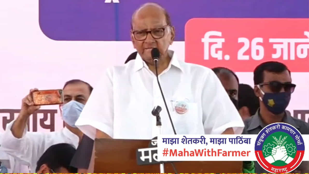 त्यानंतर शरद पवारांनी आझाद मैदानातून केंद्रातील भाजप सरकारवर जोरदार तोफ डागली. ही लढाई केवळ शेतकऱ्यांची नाही. ही आपल्या सर्वांची लढाई आहे. ज्यांच्या हातात सत्ता आहे. त्यांना शेतकऱ्यांबाबत कवडीचीही अस्था नाही. 60 दिवस झाले शेतकरी रस्त्यावर बसलाय. पण देशाच्या पंतप्रधानांनी या शेतकऱ्यांची चौकशी केलीय का? असा सवाल पवार यांनी केला.